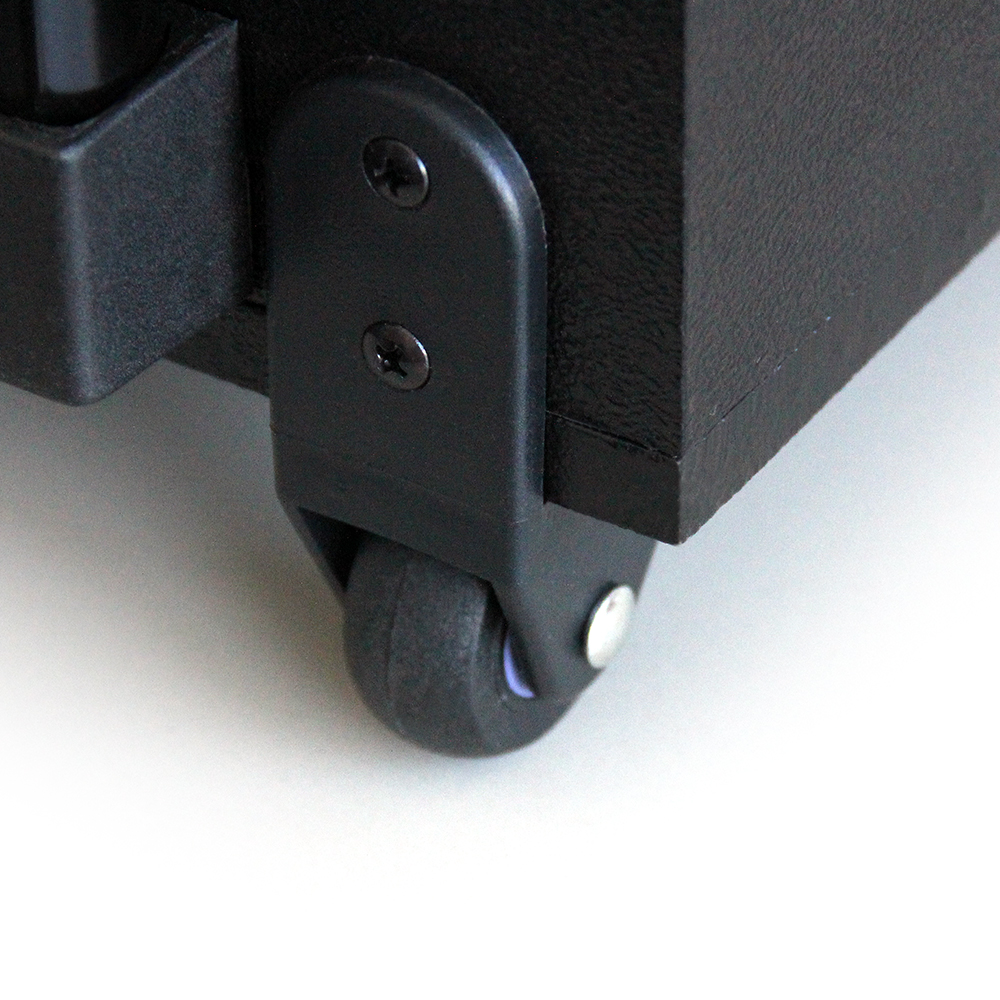 Cuerpo hecho en madera. Su diseño disponible en tres colores, no sólo le otorga un plus estético, sino que además le permite contar con superficies de apoyo más estables, lo que hará que no se distorsione nada la melodía de tu música preferida. Posee una manija integrada y además, ruedas de transporte para facilitar su traslado.